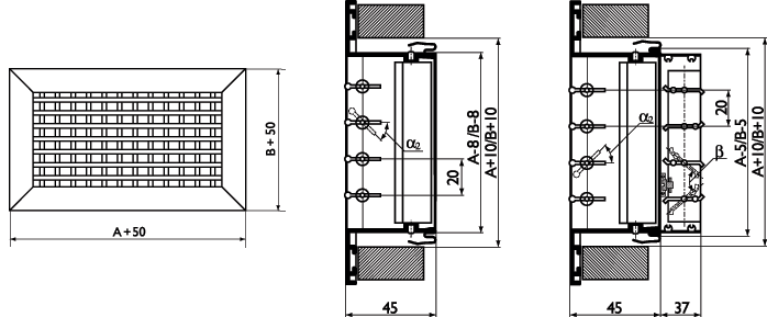 Решетки АДР оснащены регуляторами расхода воздуха. С целью удобства установки решетки могут дополнительно комплектоваться монтажной рамой.